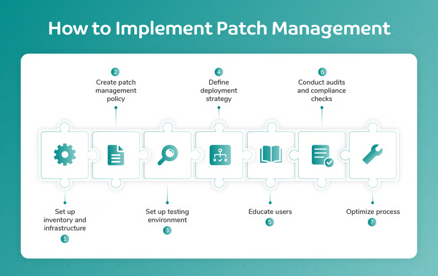 An effective patch management process typically follows five core stages.